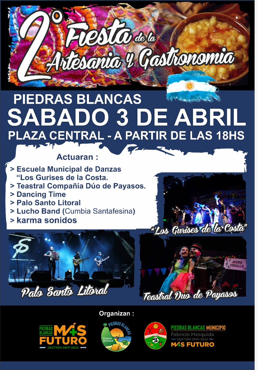 La Municipalidad de Piedras Blancas anunció que el próximo sábado 3 de abril realizará la II Fiesta de la Artesanía y Gastronomía. Será desde las 18 en la Plaza Central.