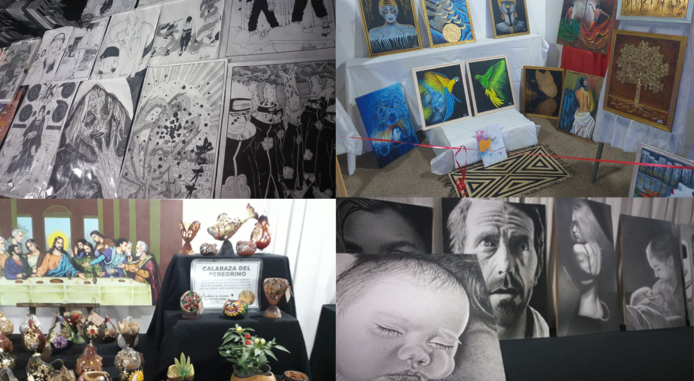La Expo Arte de Santa Elena presentó las obras de 11 artistas con un estilo variopinto y generacional. En la muestra convivieron dibujos y pinturas que podrían encasillarse en los siguientes géneros: manga y animé; pintura experimental y abstracta o psicológica; y dibujos y pinturas realistas e hiperrealistas.