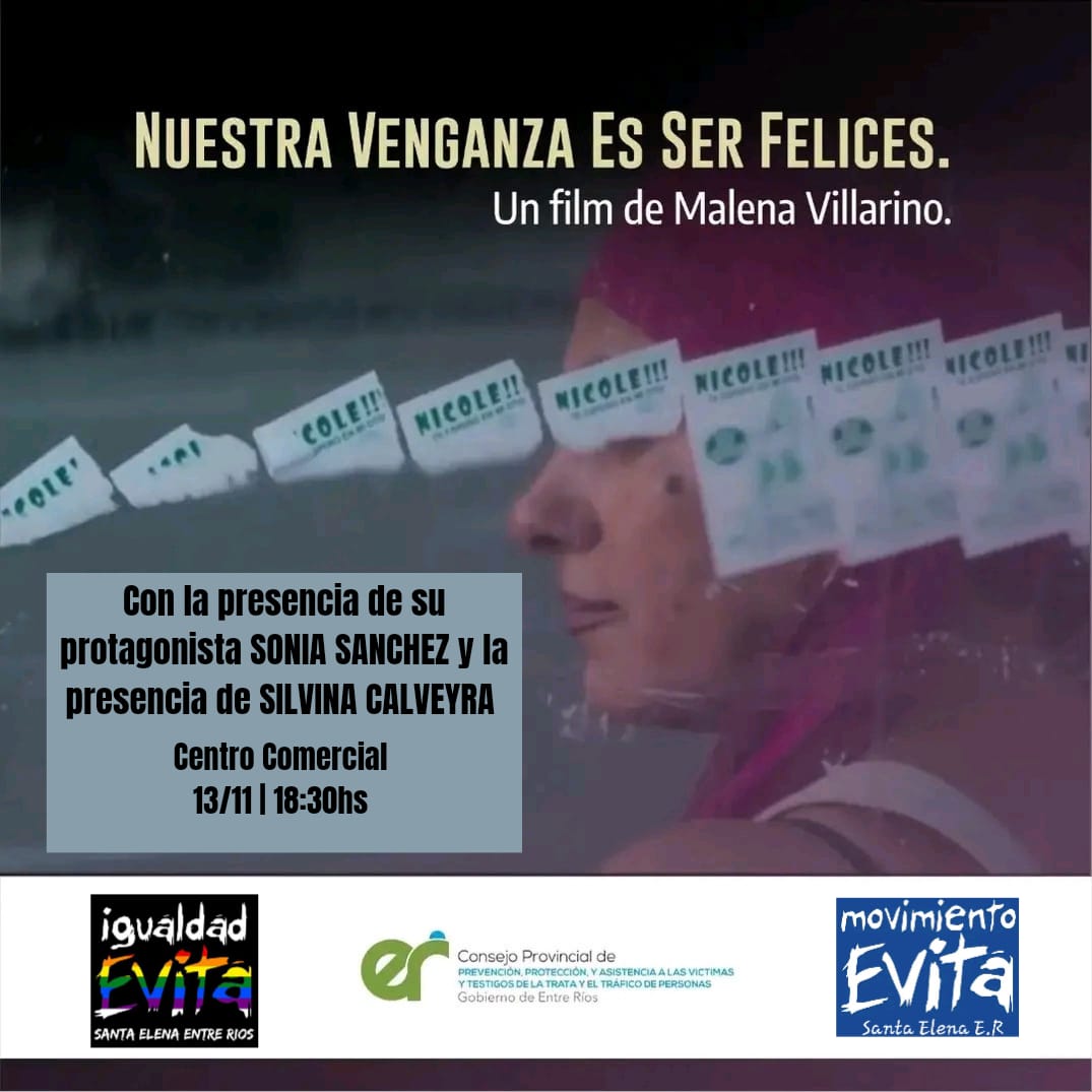Con la presencia de la sobreviviente de la trata de mujeres con fines de explotación sexual, Sonia Sánchez, convocan en Santa Elena a la proyección de la película que la referente protagoniza, "Nuestra venganza es ser felices", dirigida por Malena Villarino.