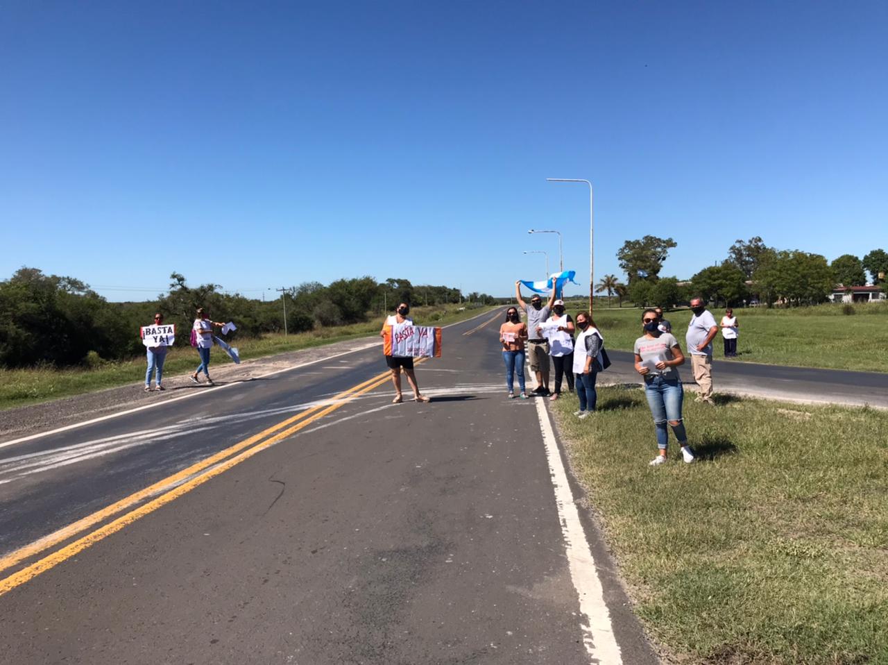 Docentes autoconvocados de Santa Elena se manifestaron en el paraje El Quebracho, sobre la Ruta Nº 12, en reclamo al Gobierno provincial por salarios acordes a los índices inflacionarios y mejoras en las condiciones laborales, como edilicias y elementos santiarios para sobrellevar la pandemia.