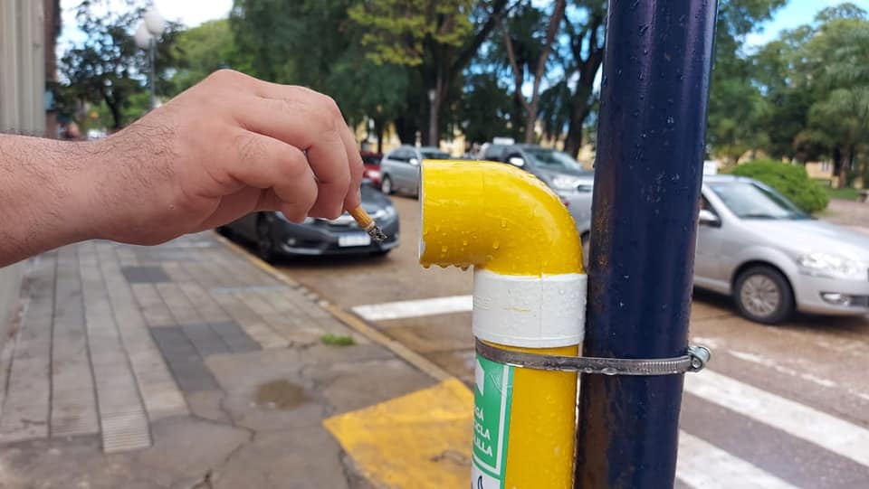 En La Paz colocaron recipientes para la recolección de colillas de cigarrillos en la vía pública con el fin de "evitar la contaminación que las mismas generan al agua, suelo y aire, entre otros efectos negativos", en el marco del Día del Clima, que se conmemoró el 26 de marzo.