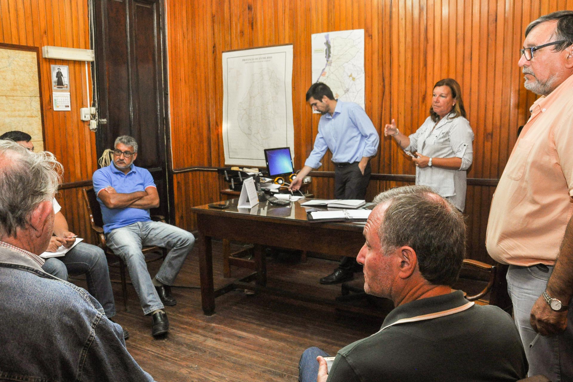 La directora administradora de la Dirección Provincial de Vialidad (DPV), Alicia Benitez, se reunió en la ciudad de La Paz con productores de la zona de Ombú para planificar trabajos hídricos. Además, junto al jefe de la zonal Vialidad de esa localidad, Jorge Martínez, y el senador provincial Aldo Ballestena, diagramaron tareas a ejecutar en el departamento.