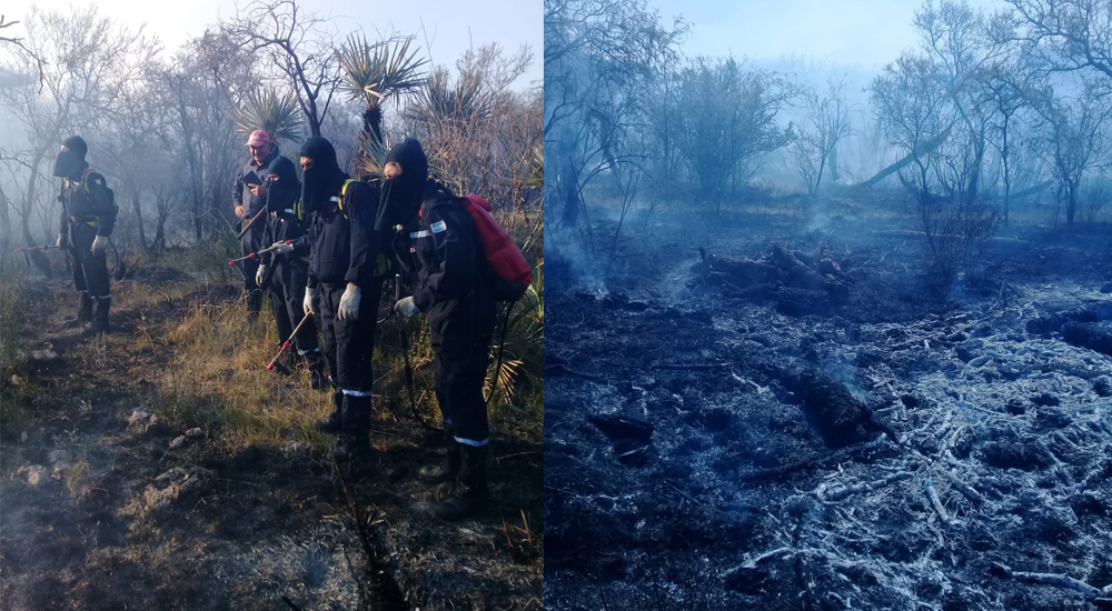 Los incendios forestales siguen afectando diferentes puntos del departamento La Paz. Esta vez, se registraron incendios en la zona de Los Algarrobos, donde actuaron Bomberos Voluntarios de Alcaraz durante 6 horas. El fuego consumió 100 hectáreas de monte.