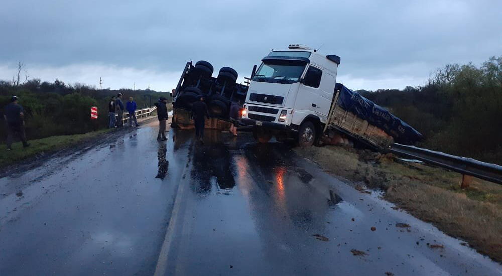 Un camión que transportaba maíz, por causas que aún se desconocen, volcó este viernes por la mañana a la altura del kilómetro 584 de la Ruta Nacional N° 12, en el departamento La Paz. El siniestro ocurrió alrededor de las 7 y tuvo como protagonista a un vehículo de gran porte, marca Volvo, que provenía de la provincia de Chaco y se dirigía a Hernandarias.