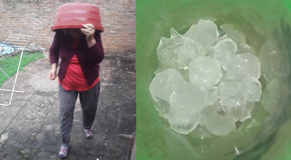Una fuerte granizada sorprendió a la ciudad de Santa Elena y zonas aledañas alrededor de las 10:30 de la mañana de este lunes.