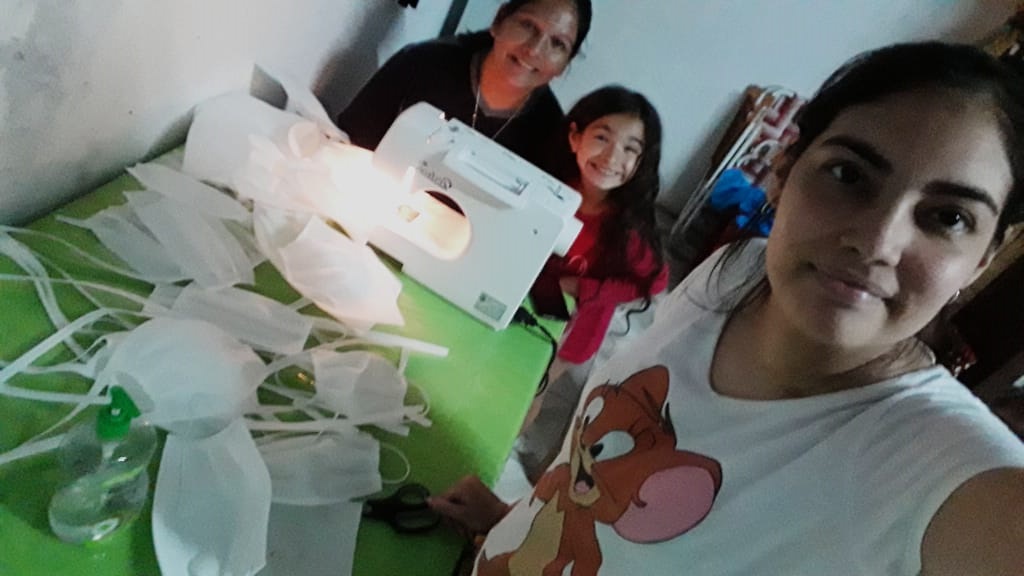 Paola Aguirre, la madre de Kimey Rivero -la joven de Santa Elena que recibió un retrasplante bipulmonar en enero de 2020- confecciona barbijos con su máquina de coser para regalarlos a quien realmente los necesita.