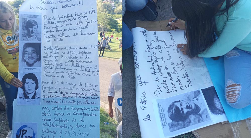 Según se informó a La Sexta, el Movimiento Evita Santa Elena, UTEP Santa Elena, CCC y PTP, llevaron a cabo "una actividad donde se conmemoró dicho día y se leyó una pequeña reseña historica de los tres desaparecidos de Santa Elena durante el terrorismo de Estado".