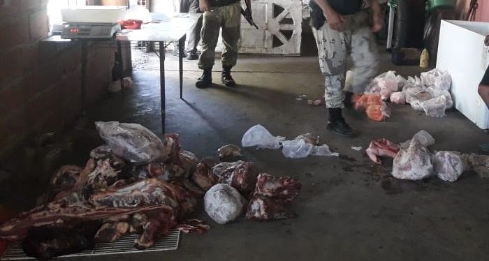 El segundo de los procedimientos se realizó en un local comercial que funciona como carnicería y domicilio particular de un familiar del primer allanado, donde los uniformados localizaron dos armas de fuego, entre ellas una carabina calibre 22L marca Marlin con cargador y nueve cartuchos del mismo calibre con mira telescópica, un revólver cromado Smith & Wesosn, además de tres cuchillos, una baliza policial de color azul y un total de 190 kilos de distintos cortes cárnicos hallados en un frezeer y una heladera de la carnicería, los cuales estaban destinados a la venta.