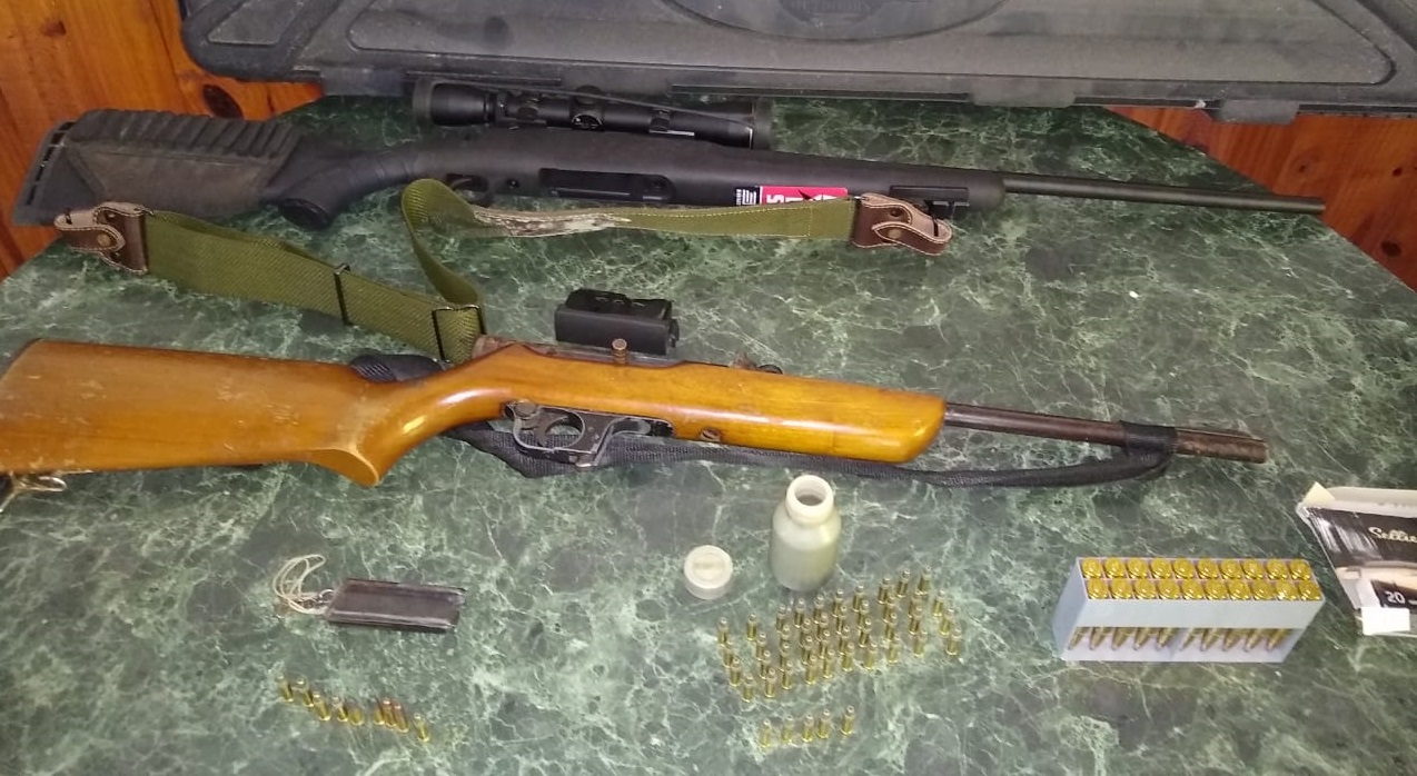 Tras notificar de las medidas judiciales a un hombre de 64 años, en una de las fincas se localizó y secuestró una carabina semiautomática calibre .22, un fusil calibre .308 marca Savage con mira telescópica, 54 cartuchos calibre .22 y 20 cartuchos calibre .308.