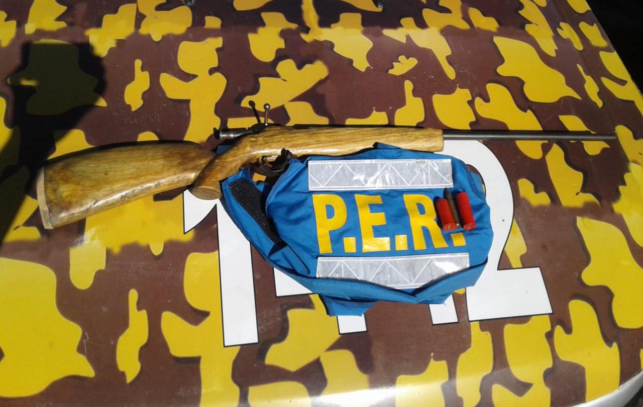 Al llegar al lugar, los efectivos notificaron al morador, un ciudadano de 25 años de oficio ladrillero, y dentro de la casa hallaron y secuestraron una carabina sin marca ni numeración visible con cerrojo colocado y culata de madera, modificada a calibre 12; un cartucho calibre 30-06 FC y dos cartuchos calibre 16 de color rojo.