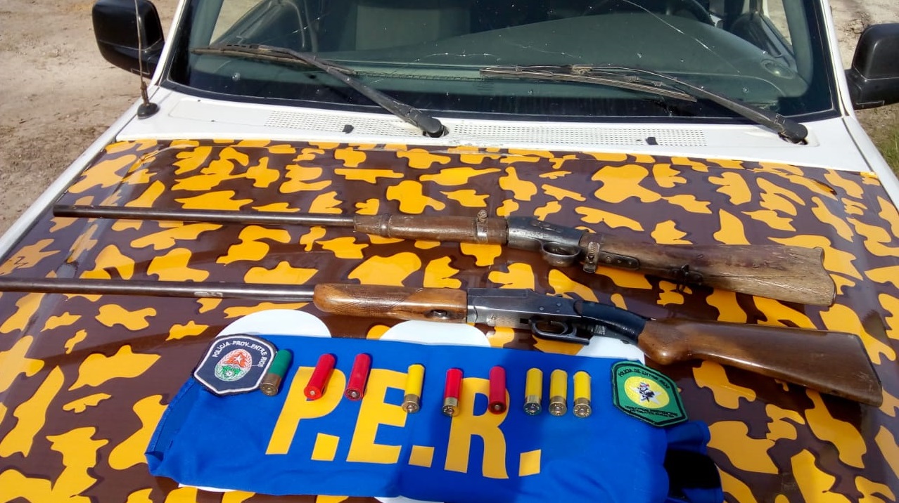 Durante la persecución, los uniformados pudieron observar que los ocupantes del rodado descartaron las armas de fuego: dos escopetas calibre 16 que quedaron abandonadas a la vera de la Ruta 48, por lo que un funcionario se bajó a custodiarlas.