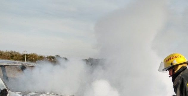 Un gran susto vivieron una mujer, su esposo y sus dos hijas el martes cuando viajaban en auto desde Bovril con destino a La Paz por la Ruta 6 y de repente el vehículo se les prendió fuego por completo, por causas que se tratan de establecer.