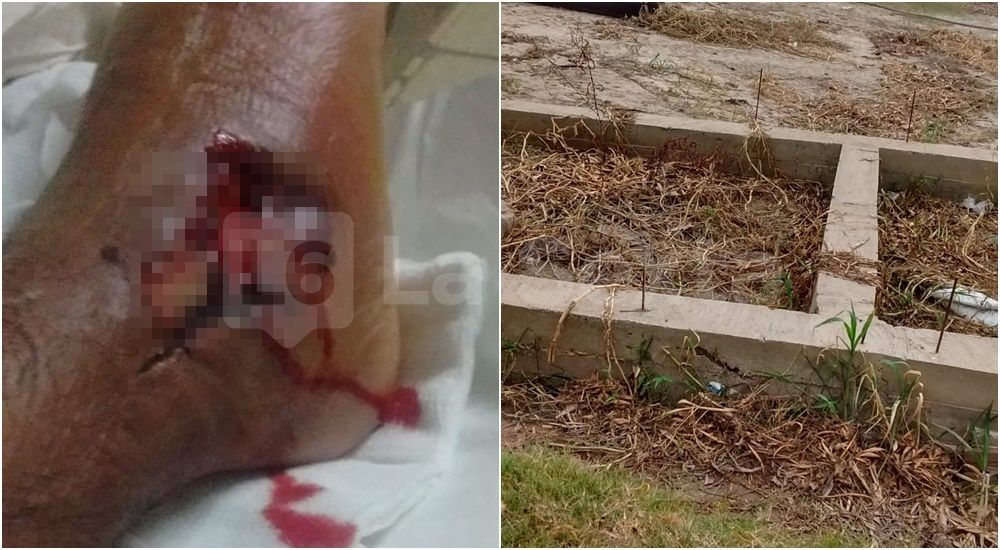 Entonces decido ayudarlo, pero entre donde yo estaba y el muchacho, hay una construcción a medias de una supuesta bajada de lanchas. Por la urgencia de la situación, paso por esa obra y por desgracia, piso un hierro de 10 o 12 centímetros que estaba oculto en unos yuyos. La herida fue profunda porque por el relieve del lugar, me precipité a apoyar todo el peso en un pie, el derecho.