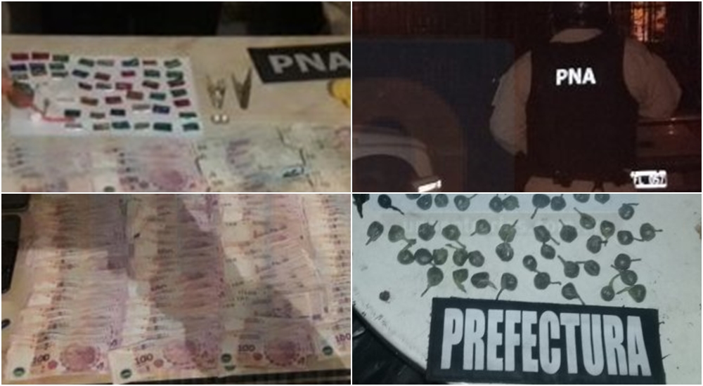 Los efectivos de Prefectura incautaron diferentes cantidades de cocaína y marihuana dispuestas para la venta, unos 20 mil pesos en efectivo, teléfonos celulares y elementos para corte, estiramiento y comercialización de estupefacientes.
