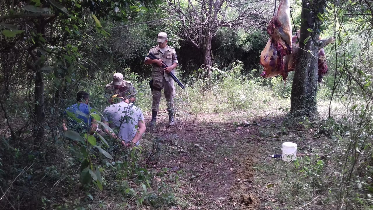 "A los pocos minutos, lograron visualizar a dos individuos que intentaban llevarse un animal vacuno faenado y despostado que tenían oculto, colgado en los árboles del monte, para luego trasladarlo en el auto en el que se conducían", indicaron. "A la voz de alto, se logró la detención de ambos, con la gran sorpresa para el personal de que al realizar la identificación de las dos personas, uno de ellos resultó ser el puestero del establecimiento rural", subrayaron.