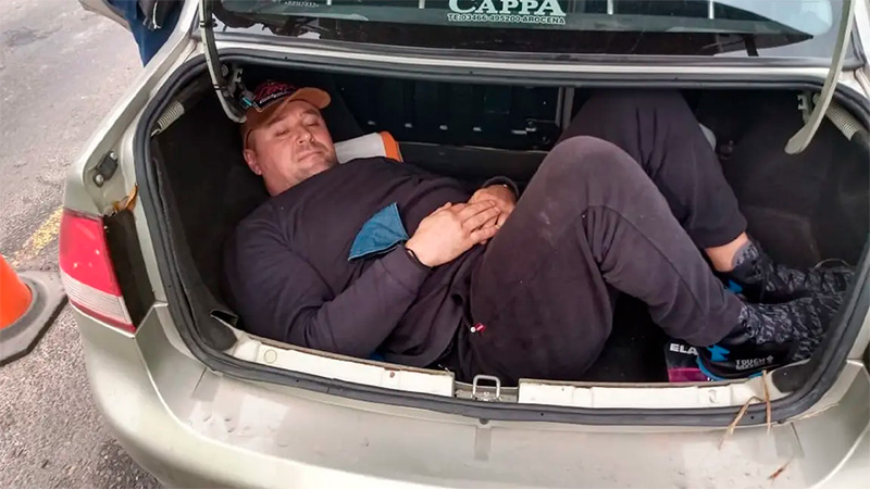 Aún más extraño es lo que ocurrió después. “Entonces él me dijo que se metía en el baúl. Me decía que estaba dispuesto a hacer 1700 kilómetros en el baúl con tal de llegar a ver a la hija. Le dije que se meta total no iba a pasar nada”, aclaró el empresario. Cuando llegaron en el Corsa gris al control de Paso Telégrafo, cerca de La Paz, los paró el control caminero. “Le dije que llevaba un ciervo, pero se ve que se notó que el baúl estaba cargado”. Nada menos que dentro del baúl había un ucraniano de unos 150 kilos y más de 1.90 de altura.