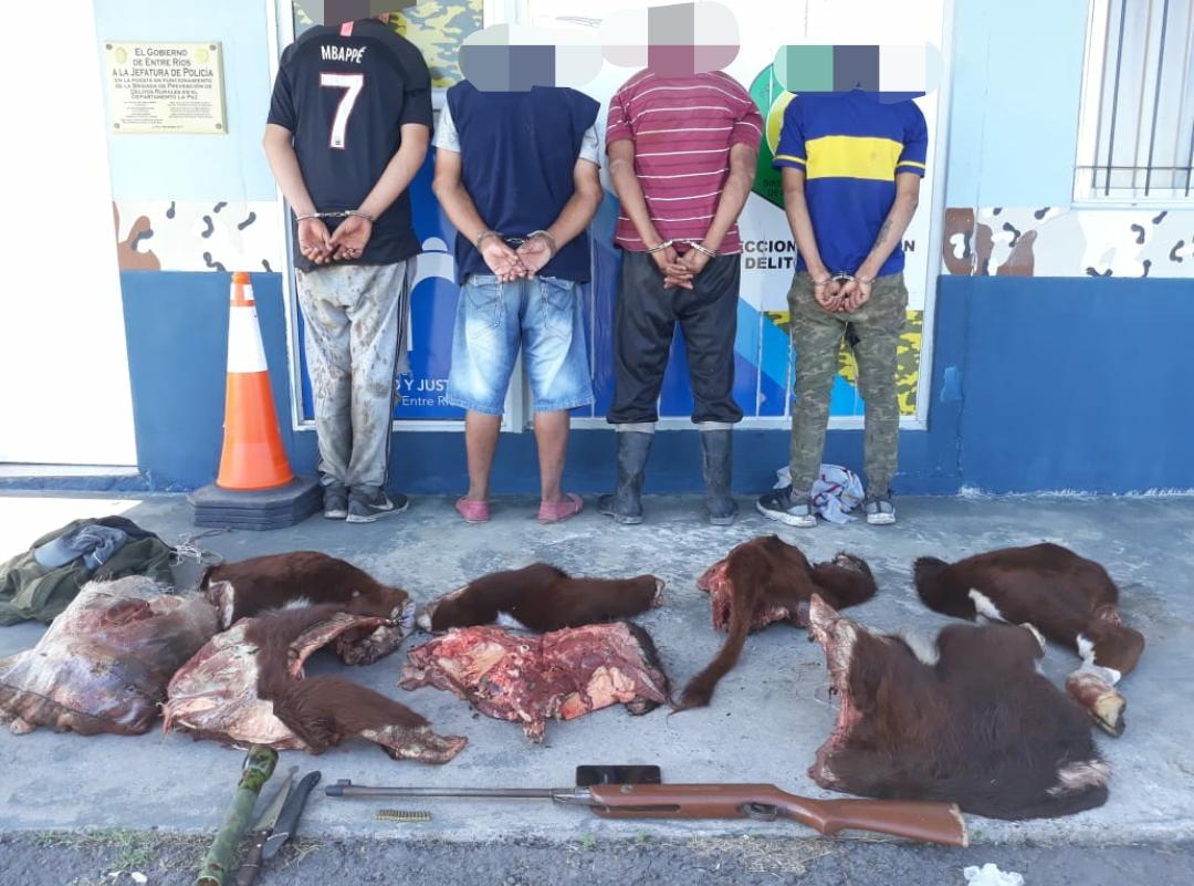 Los cuatreros fueron detenidas por el delito de abigeato, trasladados a Jefatura Departamental La Paz, donde quedaron detenidos a disposición de la fiscalia interviniente. En el lugar los uniformados procedieron al secuestro del automovil, y de los diferentes elementos, tales como la carne vacuna, el arma de fuego modificada calibre .2, entre otros elementos.