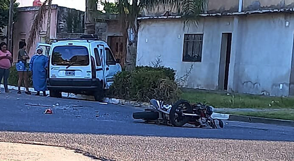 Un utilitario y una motocicleta colisionaron la mañana de este jueves en calle Belgrano y Eva Perón, en Santa Elena. Producto del siniestro, el conductor de la moto, un hombre de unos 37 años, sufrió un fuerte golpe en la cabeza y debió ser trasladado al Hospital San Martín, de Paraná.