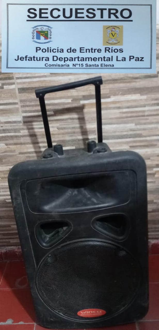 Desde la Departamental La Paz de Policía informaron este domingo que el 30 de diciembre de 2021 se secuestró "un parlante inalámbrico con entradas para micrófono y USB, que fue sustraído de la Parroquia ubicada en la intersección de las calles Presidente Perón y 9 de Julio" de Santa Elena gracias a "la visualización de las cámaras de seguridad existentes en el templo damnificado, mediante las cuales se identificó fehacientemente al autor del hecho".