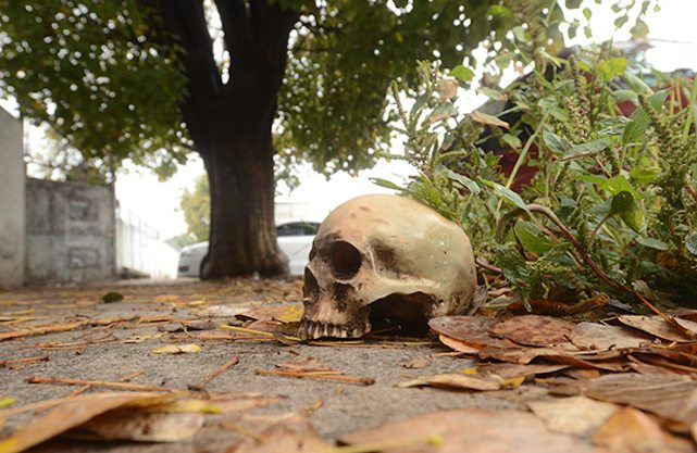 Efectivos de la Sección Judiciales de la Departamental La Paz de Policía intervinieron en el hallazgo de un cráneo humano y una tapa de féretro, este sábado, los que se encontraban en vía pública, en dos puntos distintos de la ciudad de La Paz.