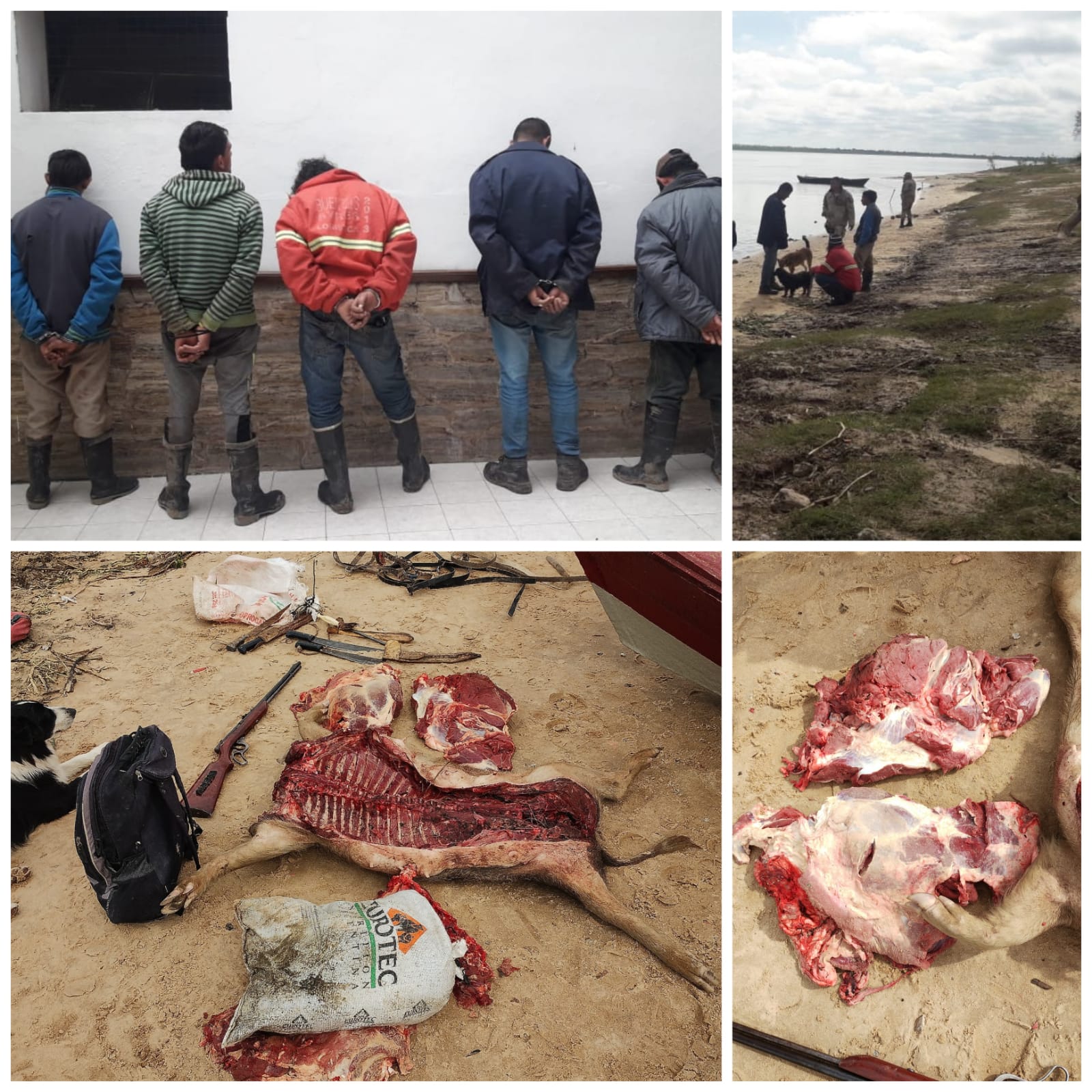 Las embarcaciones fueron interceptadas "con un total de cinco masculinos a bordo, las cuales fueron traídas a la costa por parte del personal de Prefectura, donde una vez en tierra, personal brigadista realizó una inspección y localizó en una canoa un arma de fuego calibre 22 sin documentación" y en la otra, "un animal de la fauna silvestre, chancho salvaje, y debajo de éste, diferentes cortes cárnicos de un animal vacuno, del cual los masculinos identificados no pudieron acreditar la procedencia y propiedad", informaron desde la Brigada de Abigeato.