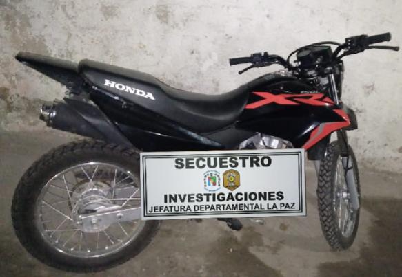 Tras una rápida investigación, personal de la Jefatura "procedió al secuestro de dicha motocicleta que se hallaba estacionada frente al domicilio de un hombre de 28 años de edad, sito en calle San Martín s/nº".