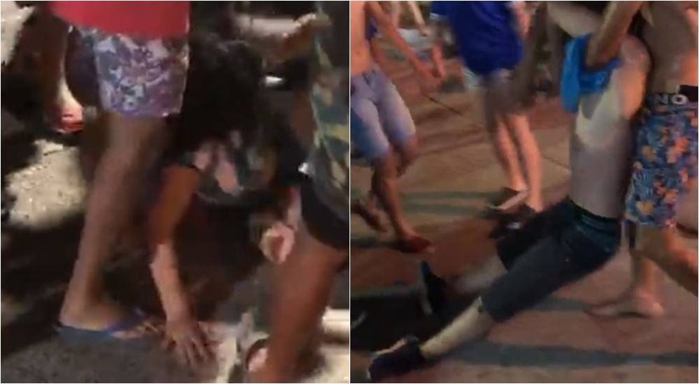 En el video, que fue enviado a La Sexta, se puede observar una aparente situación de violencia de género de un sujeto contra una joven, a quien retiene en el piso por la fuerza, hasta que es separado por otras personas, algunas de las cuales le propinan golpes que lo hacen caer desvanecido y dar su cabeza contra el suelo.