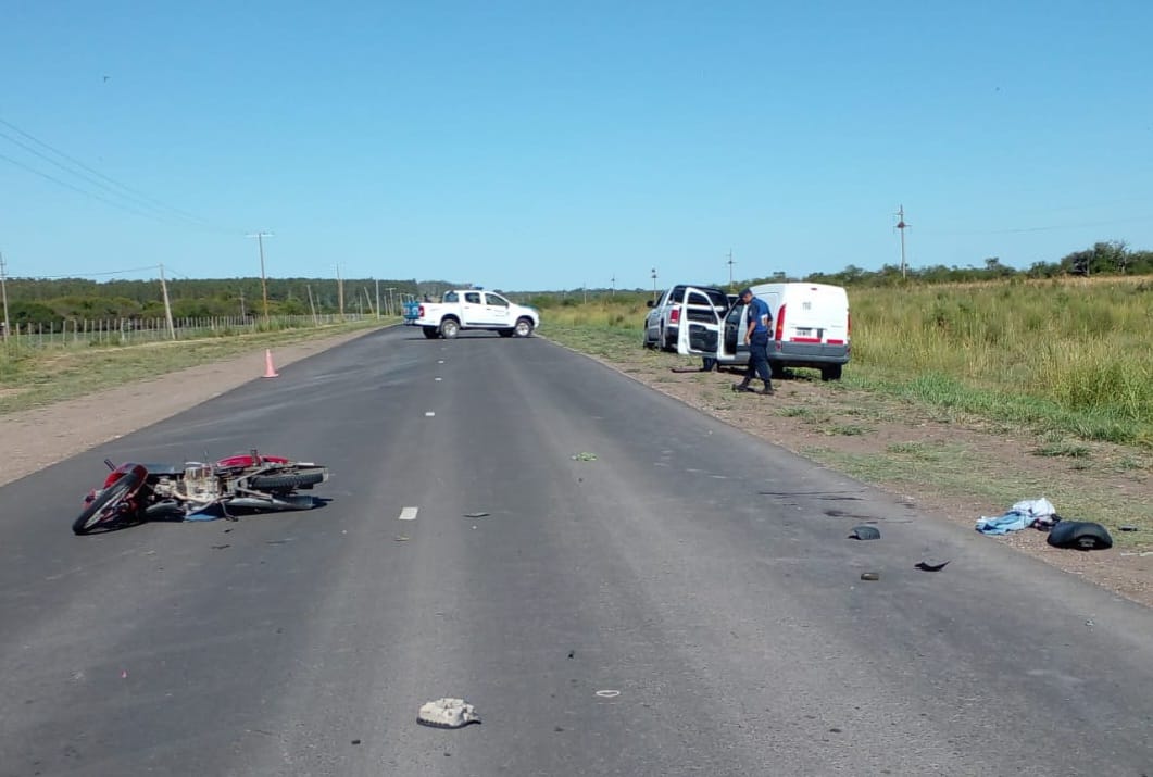 Allí, "un vehículo Renault Kangoo conducido por un hombre de 40 años con domicilio en Crespo, embistió una motocicleta marca Corven Energy 110 Cc. conducida por un hombre de 41 años y su acompañante, una mujer de 30, ambos domiciliados en Santa Elena", informaron fuentes policiales.