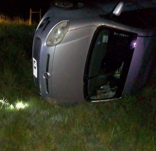 Un auto con cuatro ocupantes, entre ellos dos niños y una mujer embarazada, volcó sobre la Ruta Nacional N° 127 a la altura del kilómetro 127, en jurisdicción de Bovril, a las 6:45 de la mañana de este sábado.
