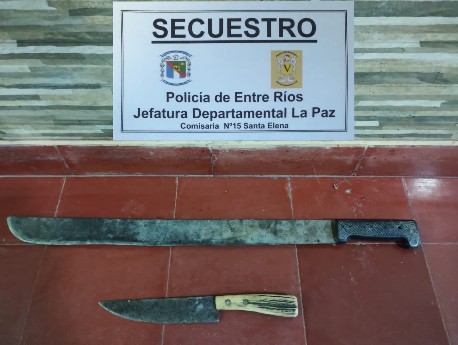 Un sujeto violento de 40 años fue detenido la tarde de este viernes en Santa Elena tras amenazar de muerte a su pareja con un machete y un cuchillo.