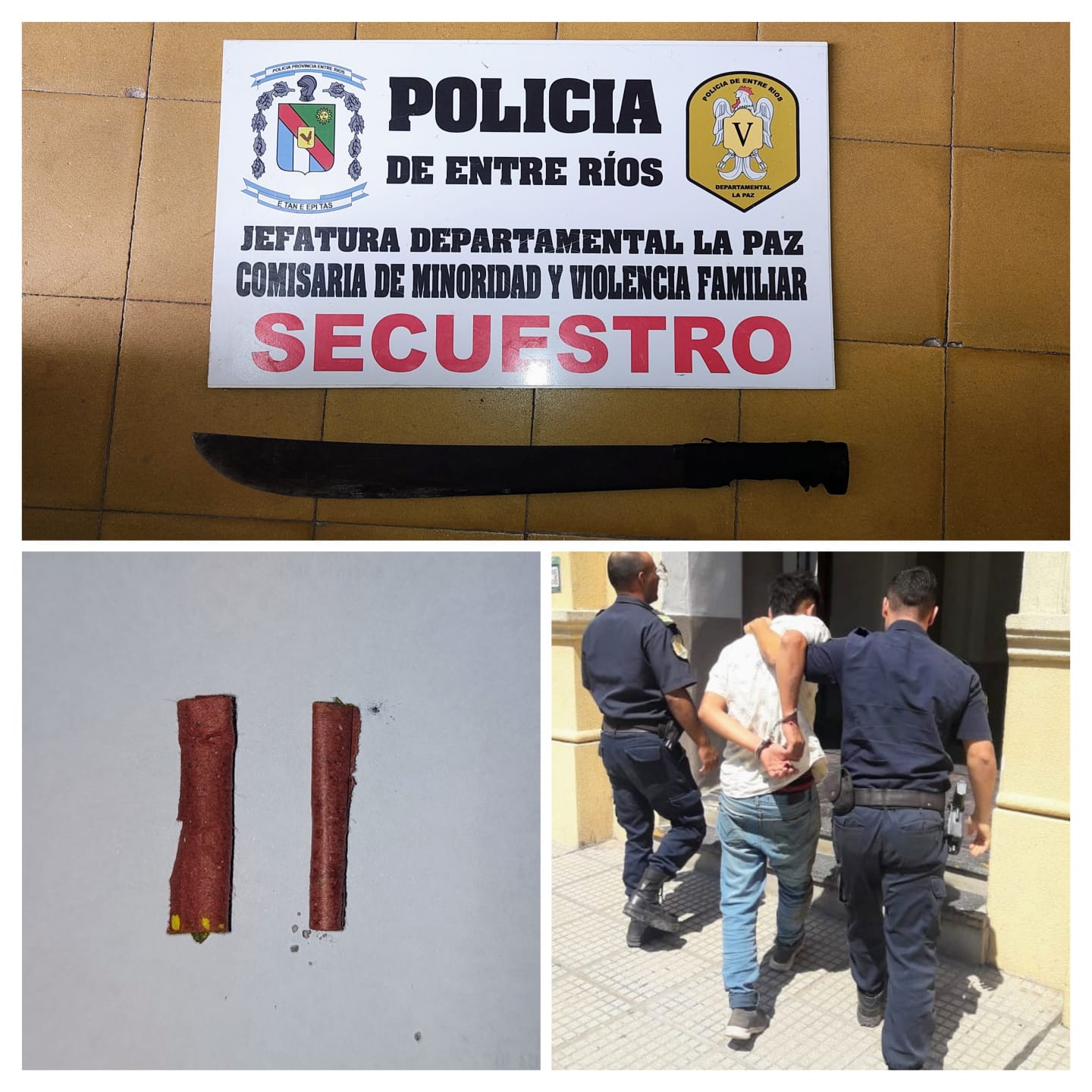 "Presentes los efectivos en el lugar, se entrevistaron con una mujer, quien manifestó que momentos antes, un individuo había intentado agredirla con un machete. El agresor, de 25 años de edad, fue demorado por el personal policial, quien al ser palpado por encima de sus vestimentas, tenía en su poder un machete de unos 65 centímetros largo, elemento que fue formalmente secuestrado", informaron desde la Departamental La Paz de Policía.