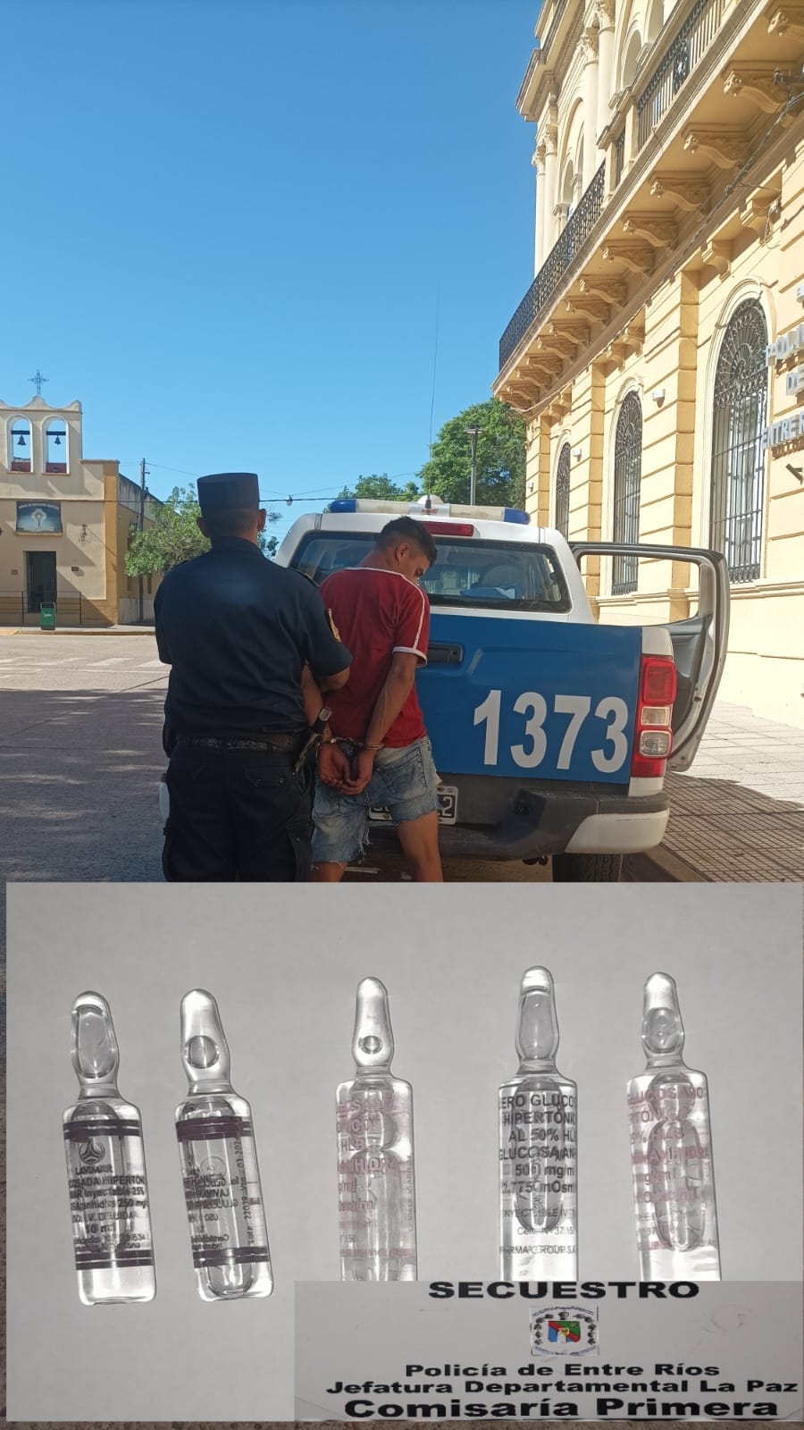 Mientras permanecía allí, "luego de unos minutos este individuo sustrajo cinco ampollas de suero glucosado y se retiró del nosocomio, por lo que fue demorado por el personal policial de facción" ubicado en el puesto del hospital, según señalaron a La Sexta desde la Departamental La Paz de Policía.