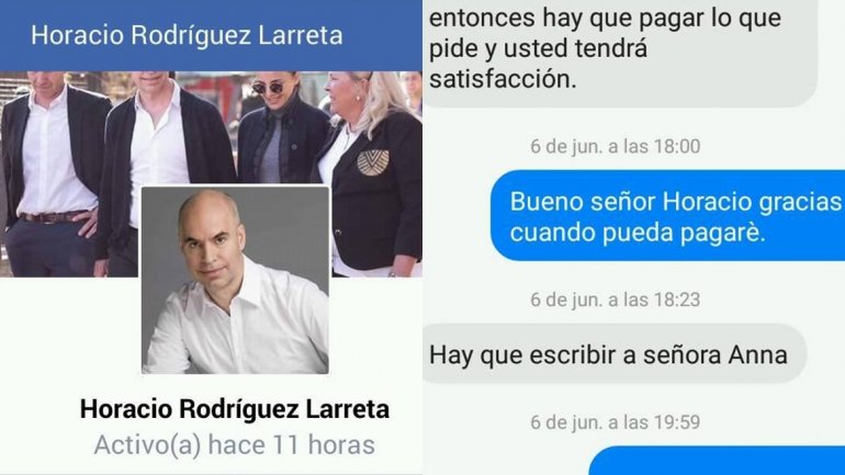 Una vecina de Paraná oriunda de Santa Elena fue estafada mediante un perfil falso de Facebook a nombre de Horacio Rodríguez Larreta -jefe de Gobierno porteño- y a través de un número de WhatsApp que le proveyó dicho perfil.