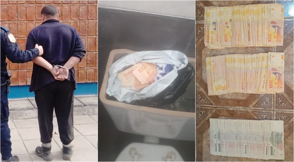 Un hombre que trabaja en un lavadero de autos en Bovril, robó 300 mil pesos del interior del vehículo de un cliente y los escondió en la mochila de un inodoro. Al verse descubierto, confesó dónde se encontraba el dinero y resultó detenido.