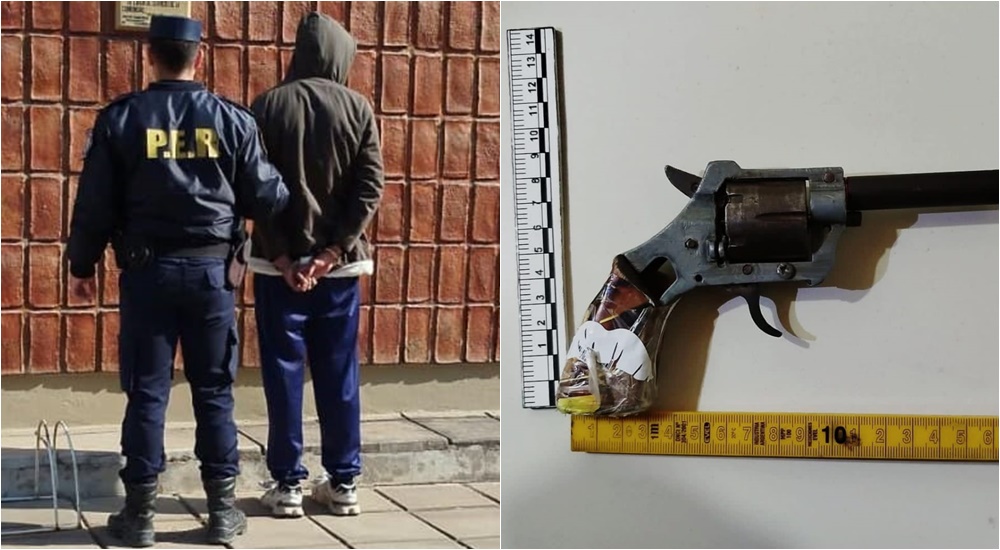 El joven fue palpado y "se encontró entre sus prendas un arma de fuego tipo revólver calibre 22 largo sin cartucherías", añadieron desde la fuerza.