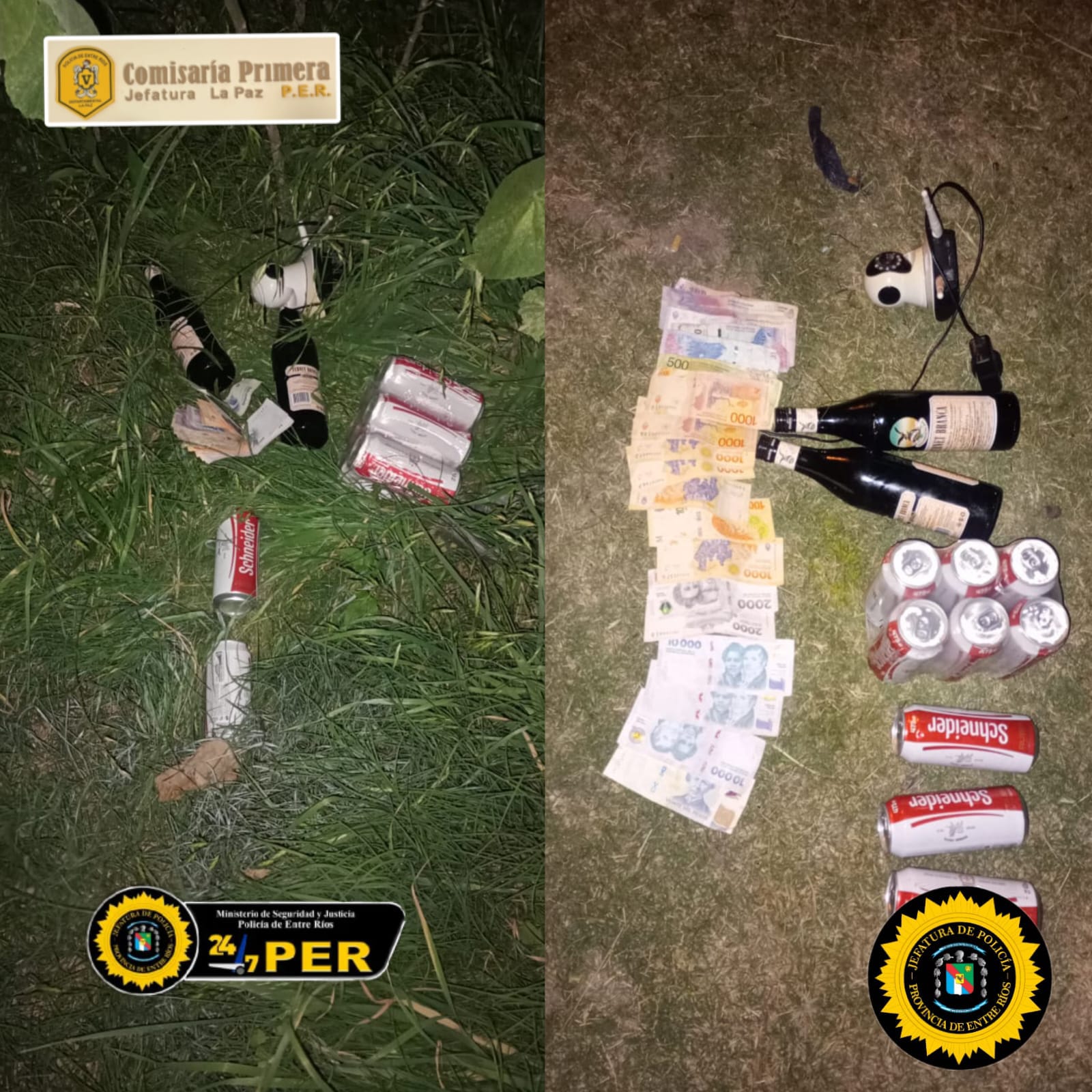 "Gracias a la colaboración de un vecino y la rápida respuesta del personal policial, se logró ubicar y secuestrar parte de los bienes sustraídos: bebidas alcohólicas (fernet y cerveza), cámara de videovigilancia con cargador, dinero en efectivo ($63.800)", detallaron a La Sexta desde la Departamental La Paz de Policía.