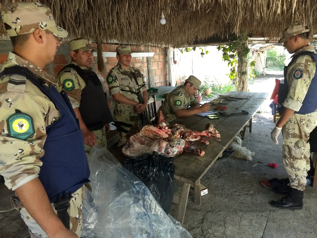 En horas de la tarde de este martes más de veinte funcionarios pertenecientes a la Dirección Prevención Delitos Rurales se movilizaron por las calles de estas localidades para efectuar un primer allanamiento en calle Abelardo Lescano, donde luego de notificar a uno de los moradores de la vivienda, se dio cumplimiento a la medida Judicial y los efectivos procedieron al secuestro de diferentes cortes cárnicos, cuchillos tipo carniceros, una cierta de mano con rastros de carne, caruchería de diferentes calibres y aparatos de telefonía celular.