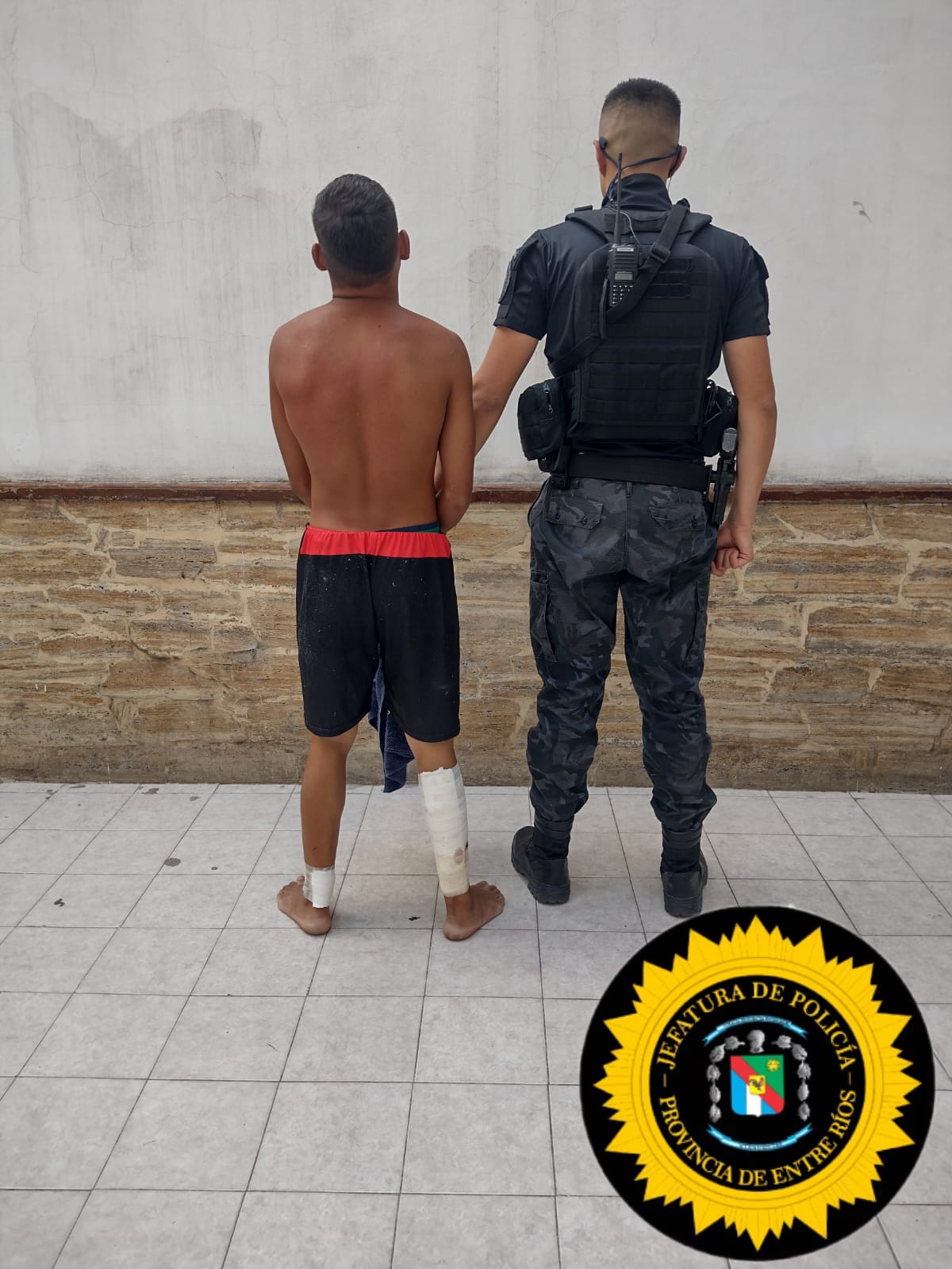 Se puso en conocimiento de la Fiscalía en turno lo ocurrido y se dispuso la detención del individuo y su traslado a la Jefatura Departamental, donde quedó alojado a disposición de la Justicia.