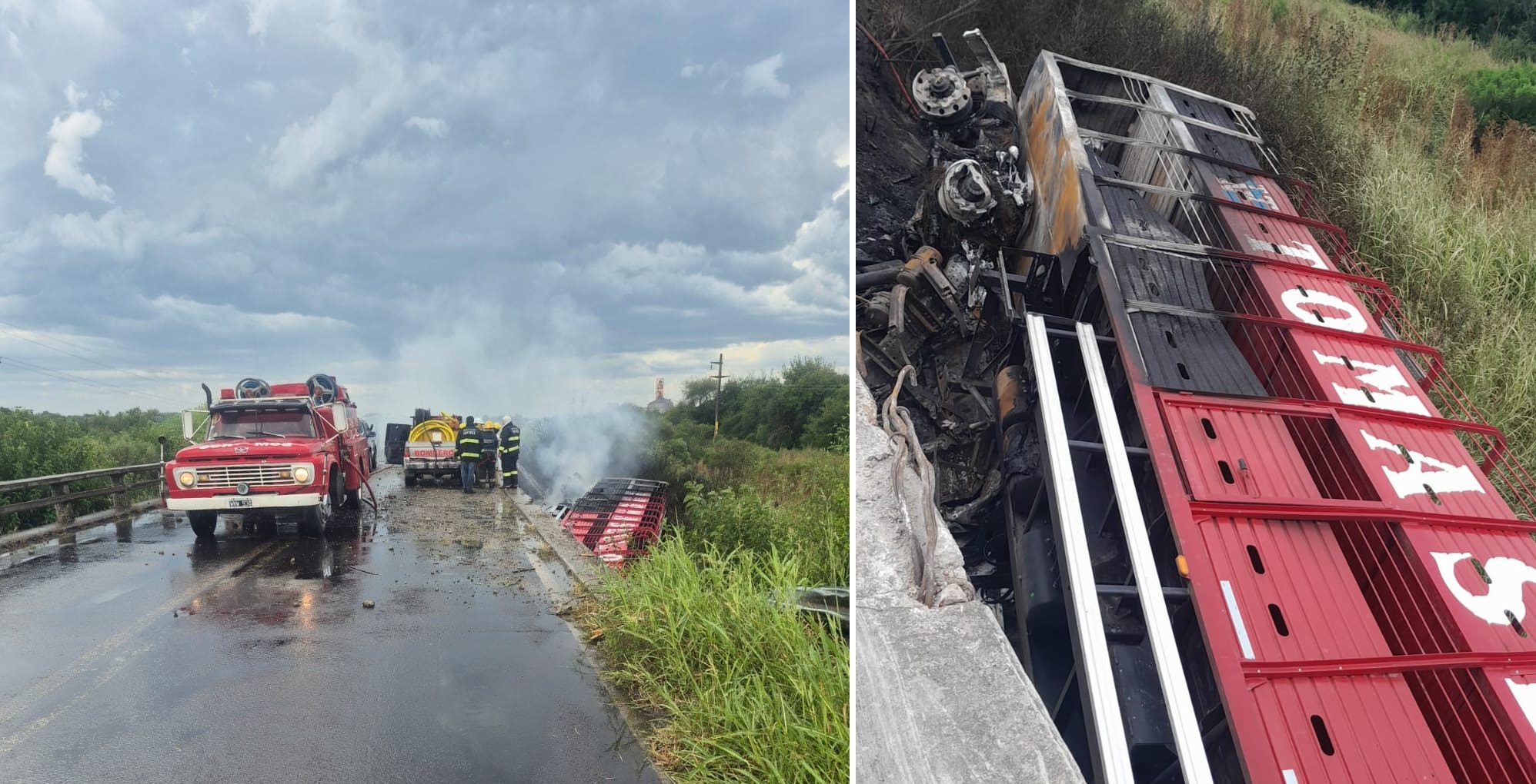 Un camión jaula despistó, cayó de un puente y se incendió a la altura del kilómetro 117 de la Ruta Nacional N° 127. Como consecuencia del siniestro vial, el conductor quedó atrapado y falleció.