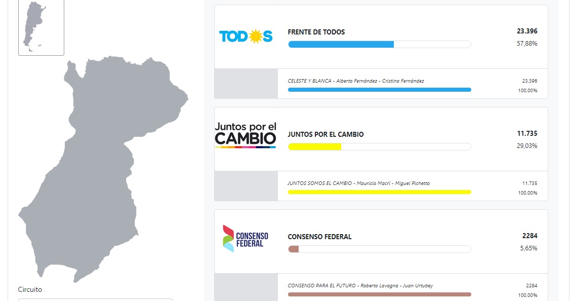 La información procede del Recuento Provisional de Resultados informado por el Gobierno nacional a través de la página resultados2019.gob.ar.