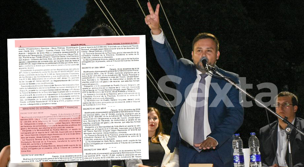 En el Boletín se publicó el decreto Nº 3991, con fecha del 10 de diciembre de 2019, por el cual el gobierno provincial dio cuenta del trámite adminsitrativo para que los fondos lleguen al municipio que desde esa misma fecha es gobernada por Gino Mesquida, del PJ. El dirigente llegó al gobierno al imponerse con el 52,72% de los votos a Sergio Fabián Albornoz, de Cambiemos, quien obtuvo el 47,28%. La diferencia fue de 85 votos sobre un total de 1.563.