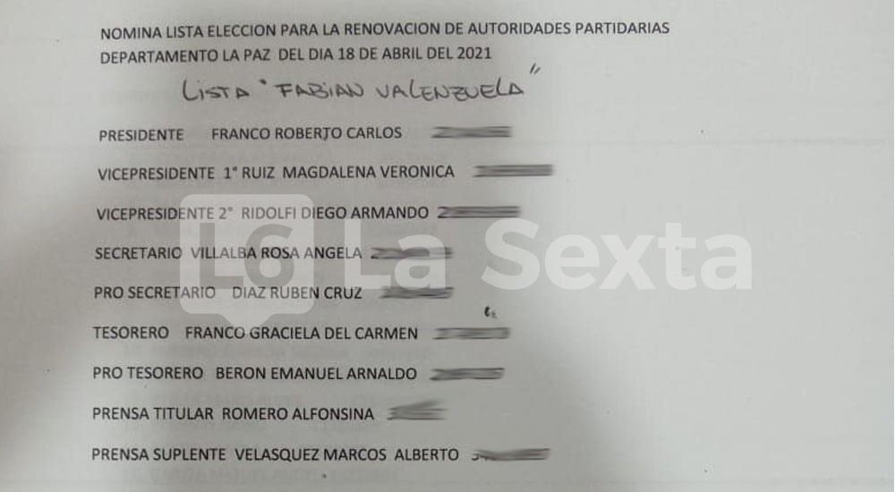 Según pudo averiguar La Sexta, la conducción y la gran mayoría de los integrantes de la lista son militantes de Construir, nuevo grupo que a fin de año conformaron casi todos los intendentes radicales -que impulsan a Pedro Galimberti (Chajarí) y Darío Schneider (Crespo) para la gobernación-. Además, otro dato no menor es que la gran mayoría de los miembros de la nómina son de La Paz, lo que significa que mantienen el liderazgo del radicalismo departamental.