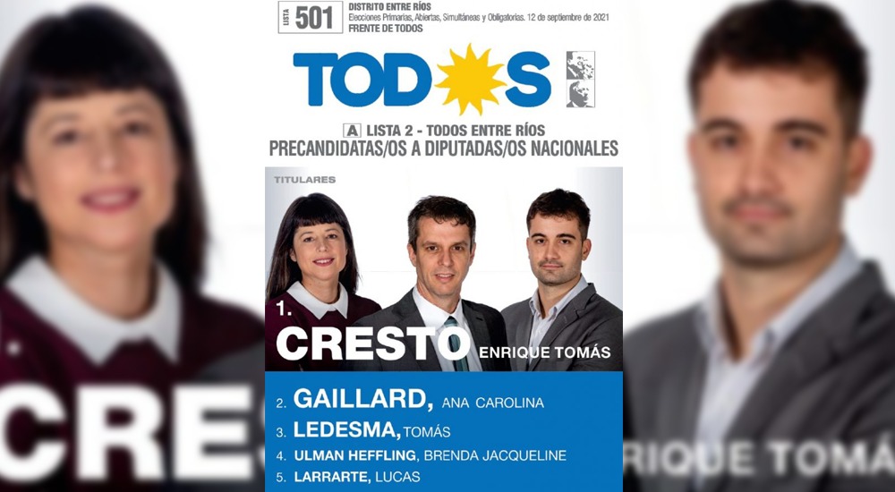 El Frente de Todos, cuya lista de precandidatos a diputados nacionales encabeza el titular del Enohsa, Enrique Cresto, se impuso en Santa Elena con el 47,02% de los votos.