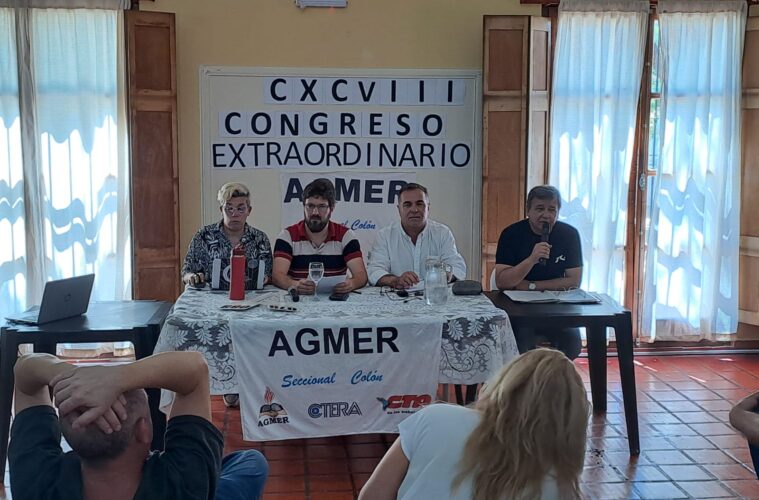El Congreso de la Asociación Gremial del Magisterio de Entre Ríos (AGMER), que este sábado sesionó en Colón, rechazó por “insuficiente” la propuesta de aumento salarial del 12% que presentó el Gobierno en la mesa paritaria el miércoles 26, y acordó demandar un incremento del 25% para el último tramo de 2022.