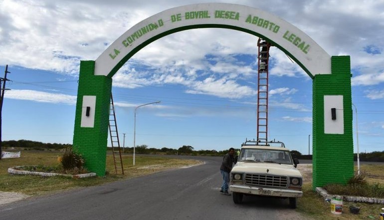 Se volvió viral y generó gran polémica en la ciudad una imagen del ingreso a Bovril, en cuyo arco de acceso puede leerse: "La comunidad de Bovril desea aborto legal".