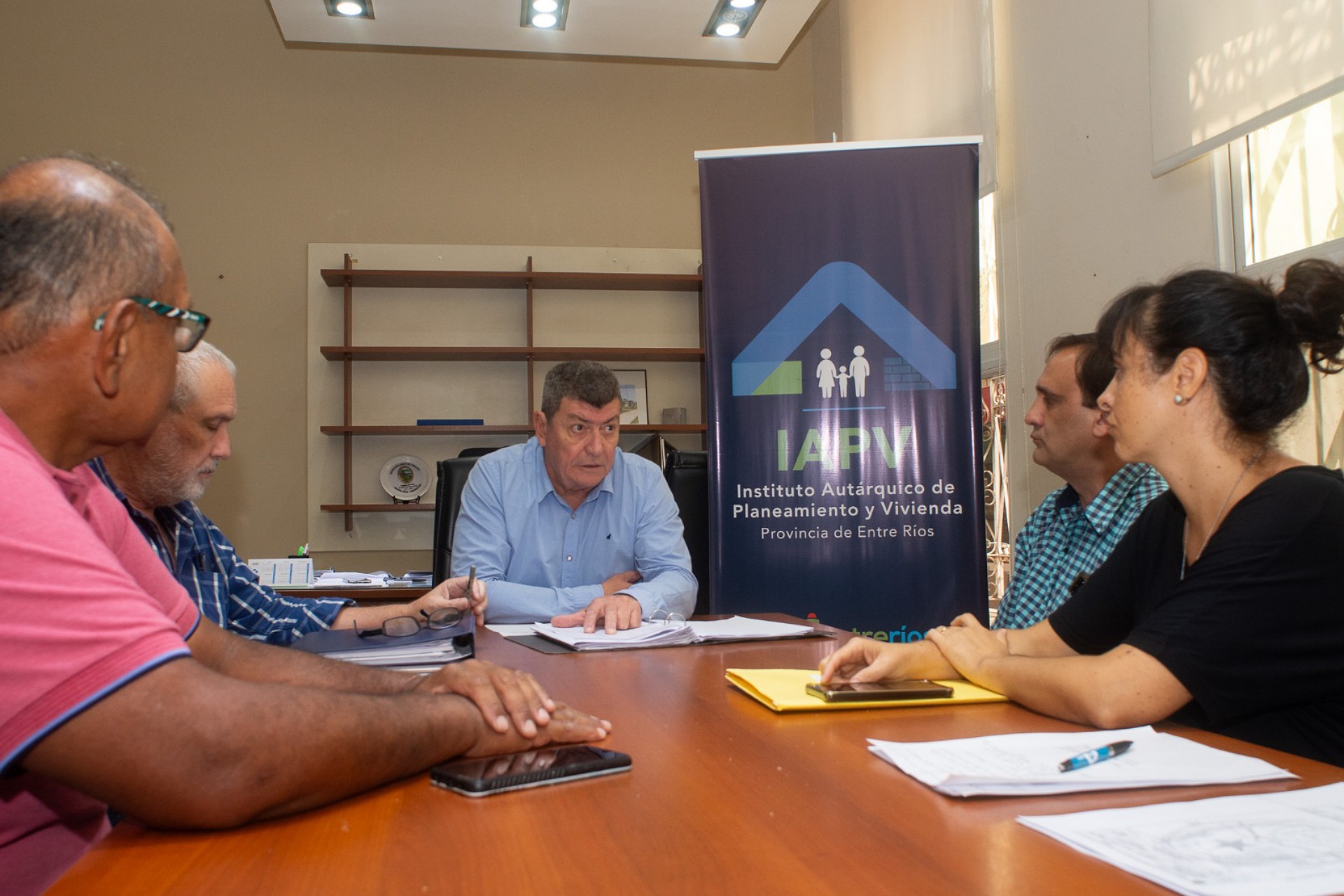 De los encuentros, que se desarrollaron en la sede del organismo provincial, participaron el intendente de María Grande Héctor Solari, el secretario general de la Asociación del Magisterio de Enseñanza Técnica (Amet) Andrés Besel y los vocales del Instituto Autárquico de Planeamiento y Vivienda (IAPV), Luis Uriona y José Artusi.