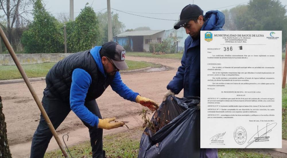 La Municipalidad de Sauce de Luna, departamento Federal, anunció una medida preventiva para resguardar la salud de sus trabajadores frente a las condiciones climáticas extremadamente frías registradas durante las primeras horas del día. La decisión fue comunicada mediante la Resolución N° 386, en la cual se establece que, a partir del martes 24 de junio del corriente año, el horario de ingreso del personal municipal del turno mañana se retrasa una (1) hora, quedando fijado de 8:00 a 13:00 horas.