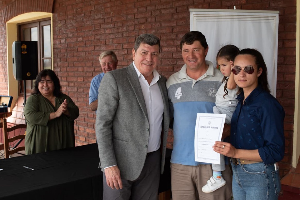 En la antigua estación de tren de El Cimarrón, otras diez familias rubricaron las escrituras de sus viviendas sociales. El acto fue encabezado por Schönhals, junto a la senadora departamental, Nancy Miranda, y el presidente comunal, Juan Carlos Boxler.
