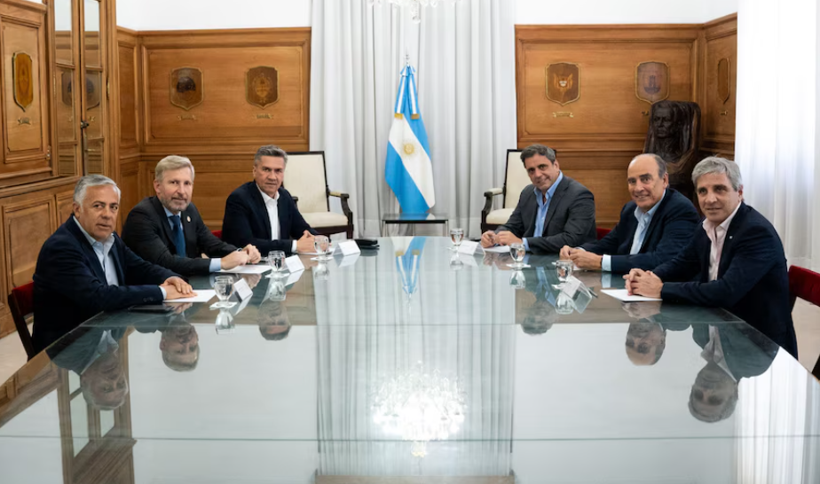 Además de Frigerio, fueron parte el jefe de Gabinete, Guillermo Francos; los ministros de Interior, Lisandro Catalán; y de Economía, Luis Caputo, y los gobernadores Alfredo Cornejo (Mendoza) y Leandro Zdero (Chaco).