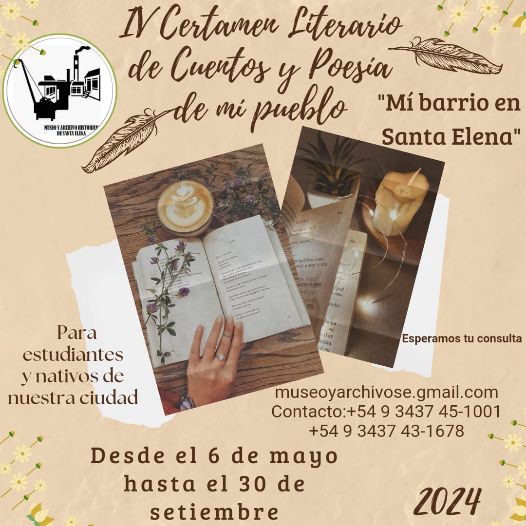 El Museo y Archivo Histórico de Santa Elena, que dirige la profesora Elena Ortiz, lanzó el IV Certamen Literario de Cuentos y Poesía de mi Pueblo. En la presente edición se propone como tema "Mi barrio en Santa Elena".